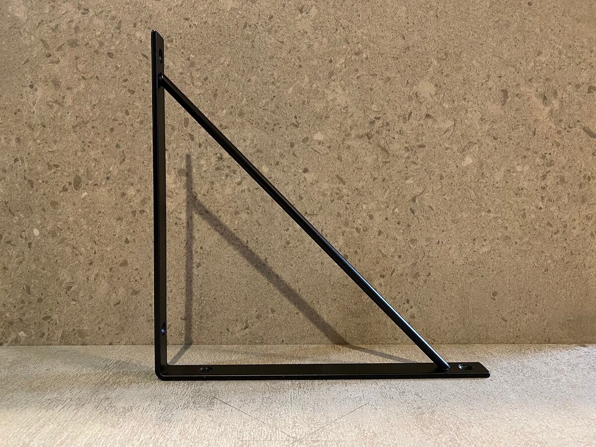 シンプルデザインのアイアン棚受け金物「IRON SHELF 250」です。壁面にビスで取り付けて使用することで、棚板をしっかり支え、洗練されたウォールシェルフを作ることができます。