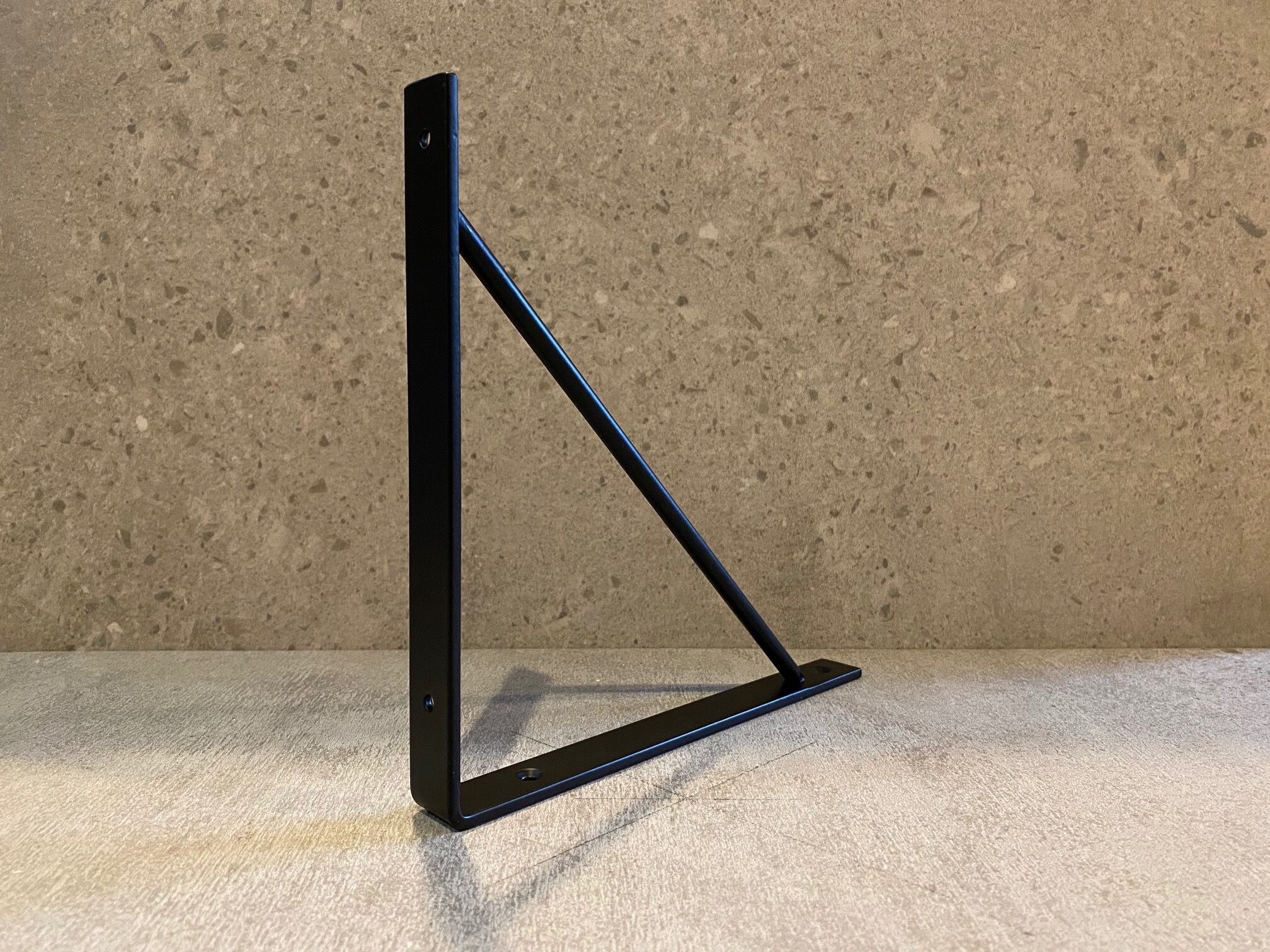 シンプルデザインのアイアン棚受け金物「IRON SHELF 200」です。壁面にビスで取り付けて使用することで、棚板をしっかり支え、洗練されたウォールシェルフを作ることができます。