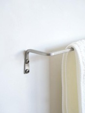 スッキリとした細いバーが特徴のタオルレールです。サテン加工を施したステンレスは艶の無いマットな質感で、指紋が目立ちにくく、スタイリッシュな印象を与えます。