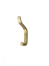 カバンや帽子などを掛けるのに便利な真鍮製ツーフックです。コンパクトなサイズ感は玄関や扉の裏などにはもちろん、壁や家具などのちょっとしたスペースにも取り付けられます。全体的にカドが丸みを帯びた、柔らかな印象のデザインをしています。