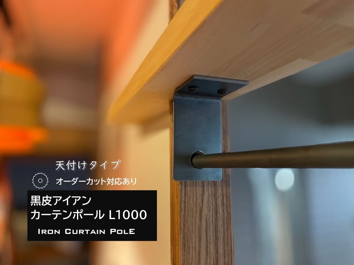 【規定サイズL1000・天井付】黒皮アイアン カーテンポール