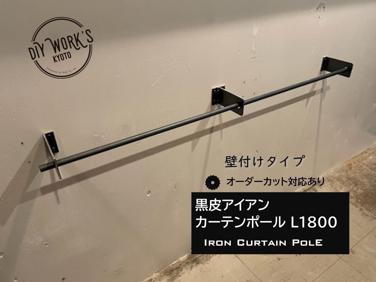 【規定サイズL1800・壁付】黒皮アイアン カーテンポール