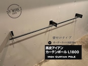 【オーダーカットありL1800・壁付】黒皮アイアン カーテンポール
