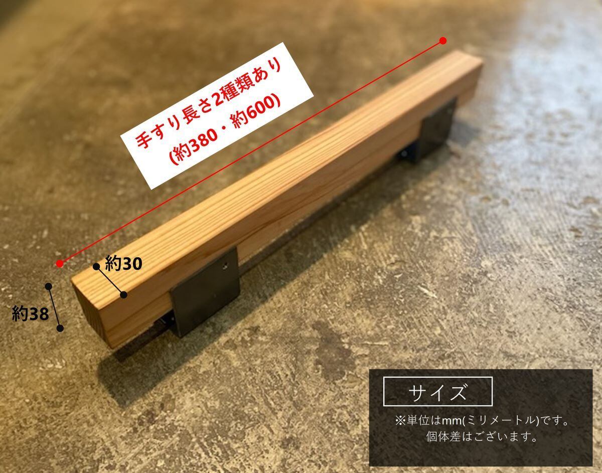 【塗装あり】天然木 手すり I型380 黒皮アイアンブラケット付き