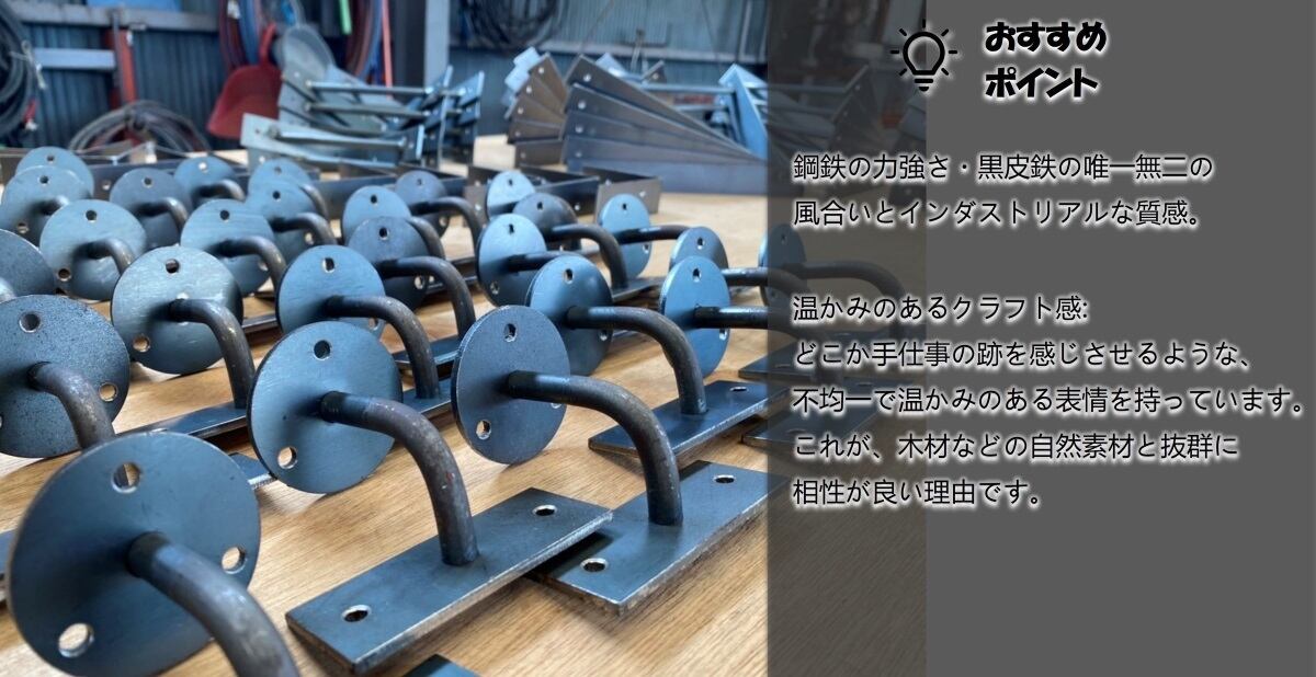 職人の手仕事による黒皮鉄で空間を豊かに彩ります。