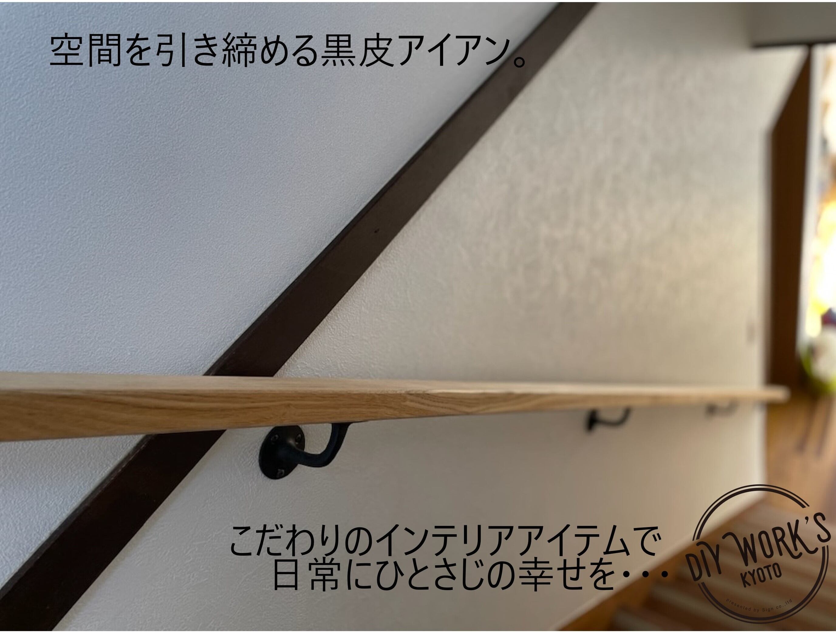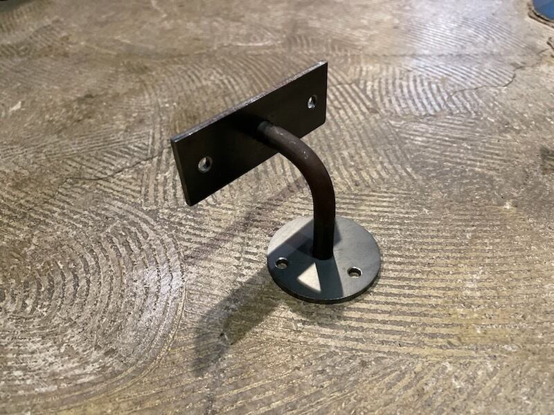 職人による手仕事でつくられた黒皮仕様の当店オリジナルの鉄製手すり用ブラケット。